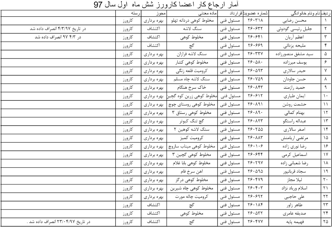 امار ارجاع کار قراردادهای اعضا کارورز مربوط به شش ماه نخست سال ۱۳۹۷